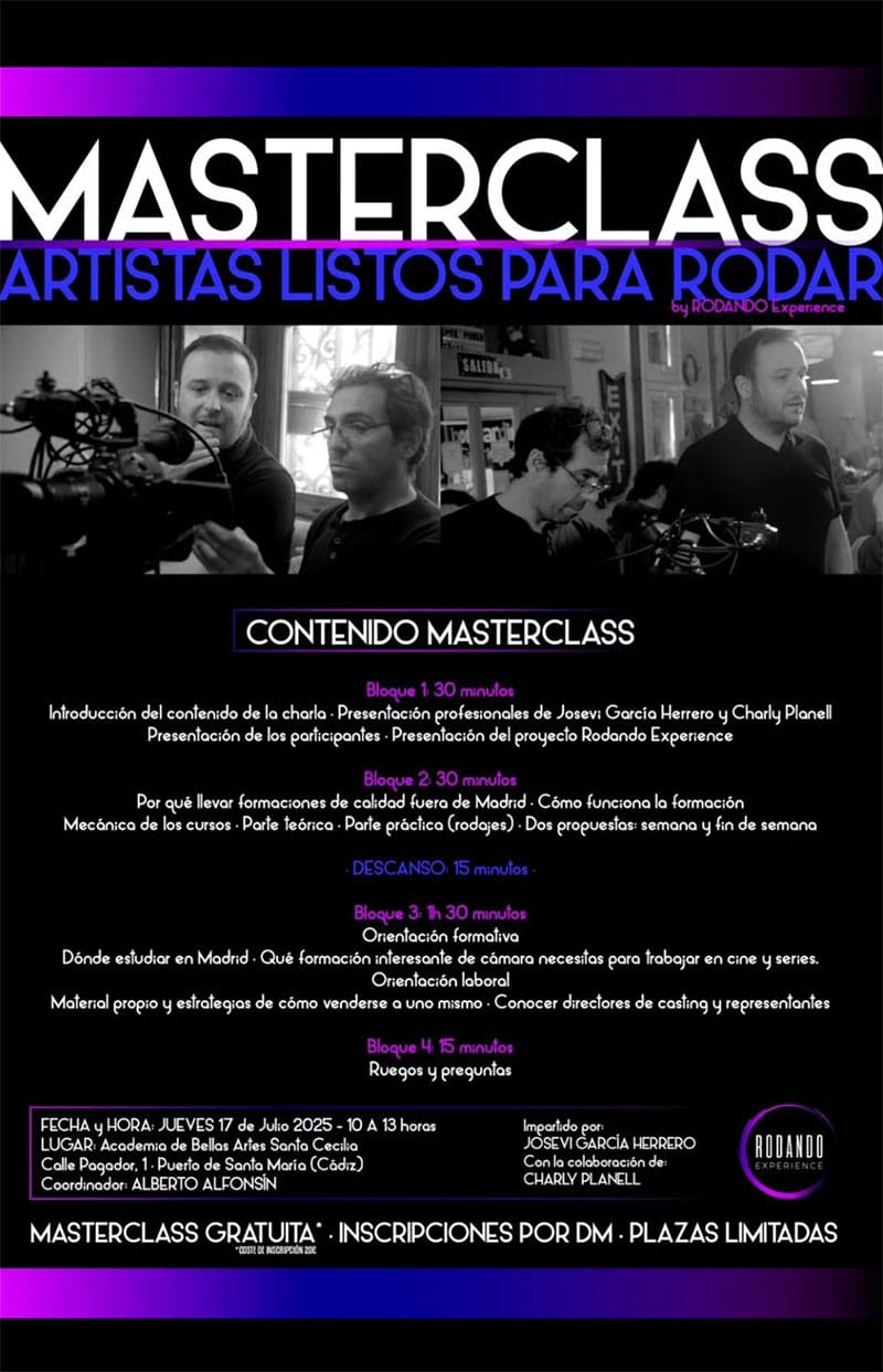 El jueves 17 de julio, de 10:00 a 13:00 horas, la Academia de Bellas Artes Santa Cecilia acogerá una MASTERCLASS titulada: